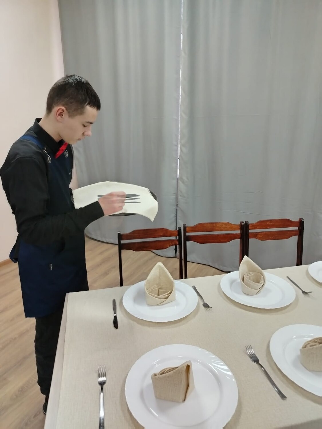 В воздухе витает аромат кофе и свежей выпечки, звенит хрусталь, а белоснежные салфетки сложены безупречными конусами. Это не сцена из престижного ресторана — это наши выпускники демонстрируют высший пилотаж на итоговой аттестации! В техникуме состоялся долгожданный финальный аккорд обучения по профессии «Официант».